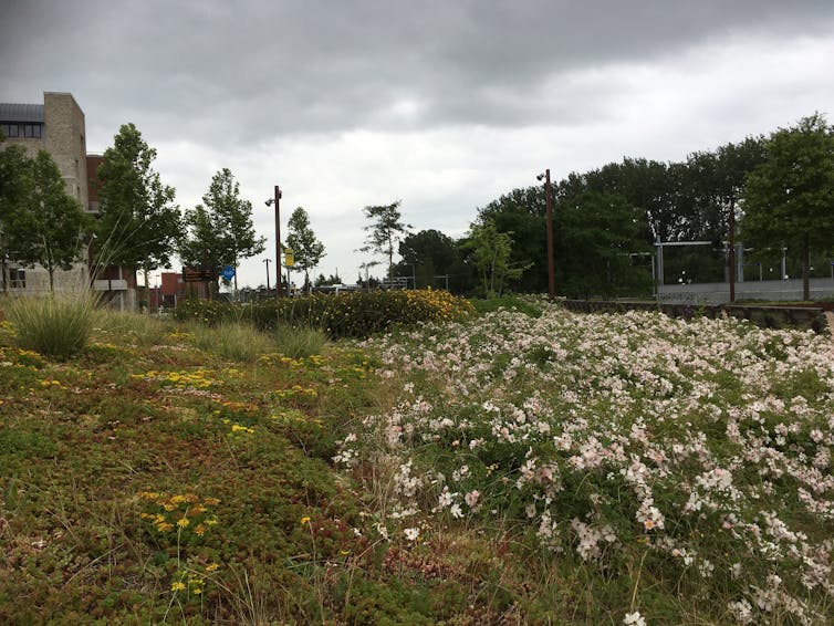 Green roofs, like this one in the Netherlands, can reduce heat transfer through the building roof, improving comfort inside and reducing heat stress from heat waves. (Shutterstock)