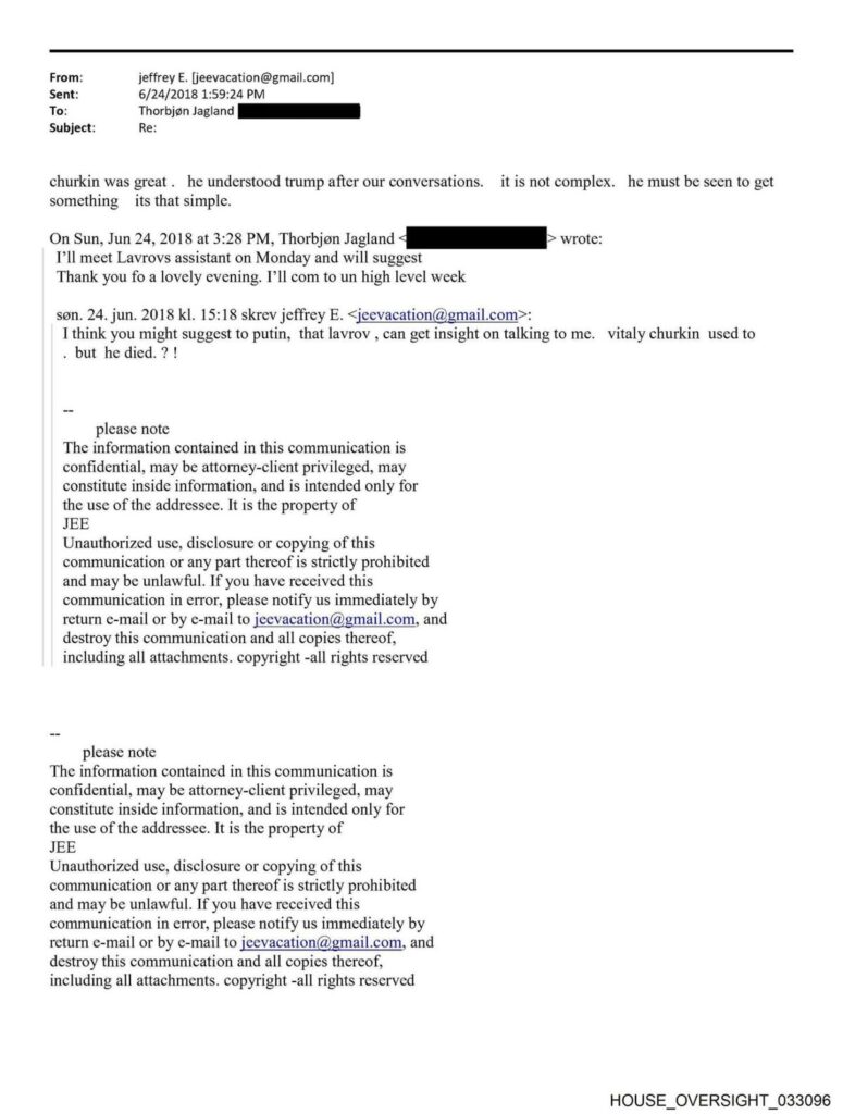 Russian ‘backchannel’ Subject of Mail between Epstein and Jagland