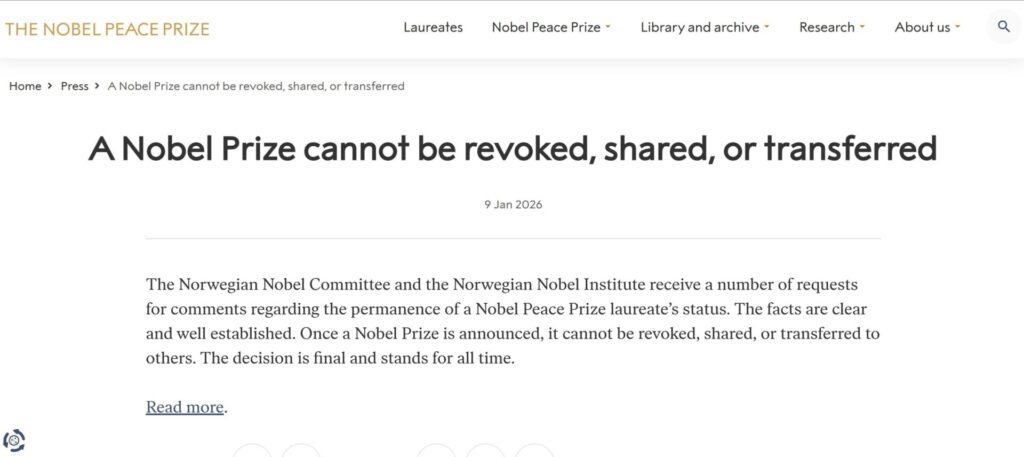 A Nobel Prize cannot be revoked, shared, or transferred